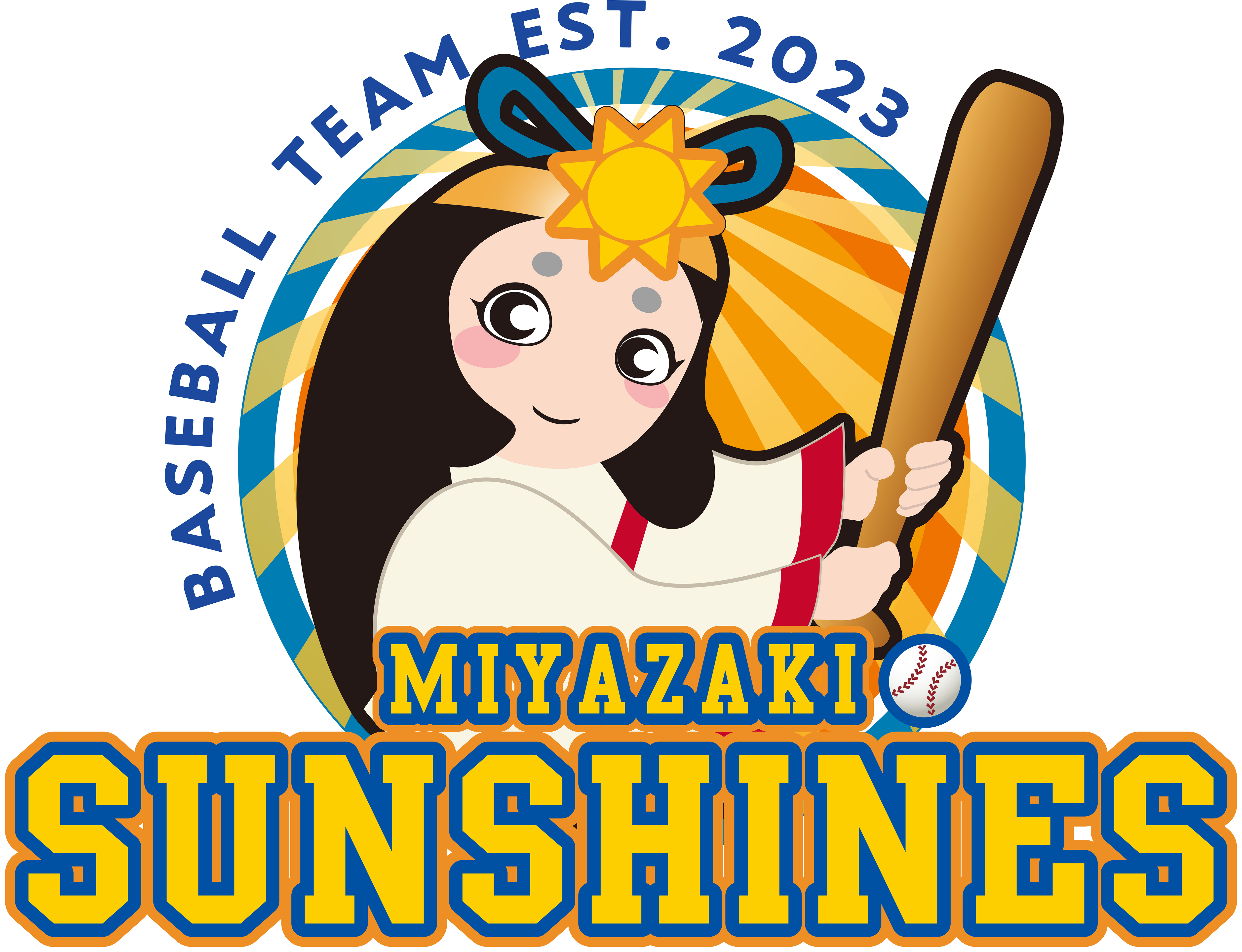 미야자키 선샤인즈는 큐슈 아시아 리그에서 히노쿠니 살라만다즈, 오이타 B-링스, 키타큐슈 시모노세키 피닉스에 이어 네 번째로 창단한 구단입니다. 2022년에 창단하여 2023년 시즌부터 리그에 참여하고 있습니다. 미야자키라는 이름처럼 미야자키현 미야자키시를 연고지로 두고 있습니다. 두 번째 사진에 있는 엠블럼을 보면 일본프로야구까지 통틀어 확인하면 여성을 모티브로 활용하고 있는 점이 특이하면서 참신한 느낌을 줍니다. 엠블럼에 있는 여성이 정식 마스코트는 아니지만, 이름은 있는데요. 테라짱이라는 이름을 불리고 있습니다.